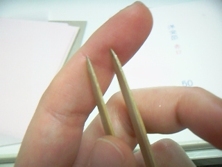 こちらが箔箸。竹でできています。売られているものだと先が厚いので、