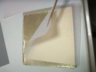 洋箔。写真ではわかりにくいですが、赤口なので赤みの強い金色です。