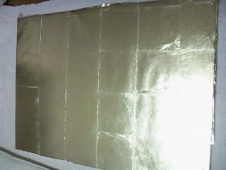 洋箔とは簡単に言えば金箔の偽物です。金箔よりもぎらついた輝き。